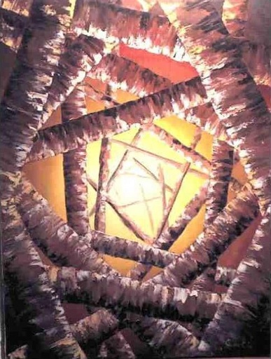 naschilderen van oude meesters. Buiten dat maakte ik aquarellen, pentekeningen en portretten met siberisch krijt en houtskool. Maar de inspiratie was weg, en zoekende naar iets nieuws, gekomen tot deze stijl, waarvan 'bomenhemel' het allereerste werk is, gemaakt in januari 2003. Sindsdien is de inspiratie grenzeloos te noemen, en schiet alle kanten uit, soms met een duidelijke bedoeling en een diepere achterliggende gedachte, zoals 'paniek', en soms ontstaat een idee gewoon in bad, zoals 'verpakte lucht'. Omdat ik altijd binnen het kader van het realistische heb