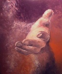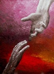 2003hoe snel wordt gevoel van wantrouwen verdrongen door gevoel van warmte bij onverwachte hulp van een onbekende .....tekst: Gerry de Bie. Een plaatje op internet heeft me op het idee gebracht voor dit doek.